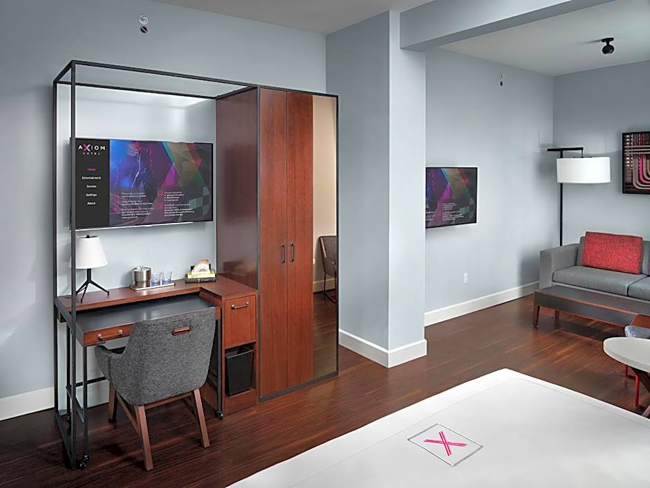 Not only does the Axiom Hotel offer a prime location, but it also provides a range of fantastic amenities. From the moment you arrive, you'll experience top-notch service with a 24-hour front desk and concierge. Relax in the comfort of your non-smoking room, complete with air conditioning and complimentary Wi-Fi. If you're a pet lover, you'll be happy to know that the hotel is pet-friendly, although extra charges may apply.